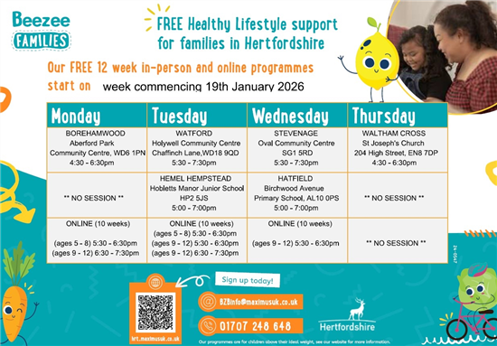 - Beezee Families is an award-winning 12-week programme for 5 – 15 year olds and their families. Our team of nutritionists focus on making small, sustainable changes around food and physical activity – and have fun while doing so! Families can also learn at their own pace for six months over on our Academy. Alternatively, they can access our 1:1 support throughout the year.