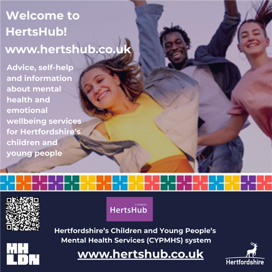 A communications toolkit with social media posts, images, newsletter text, printable posters and a PowerPoint slide will be cascaded to Hertfordshire's communications colleagues working in health, social care, education, VCSEs and other sectors this month (December), so that we can work together to raise awareness of the new website as a system. If you would like to be added to the distribution list for this and/or for other Herts CYPMHS key monthly messages, please E: lisa.gazeley@hertfordshire.gov.uk.