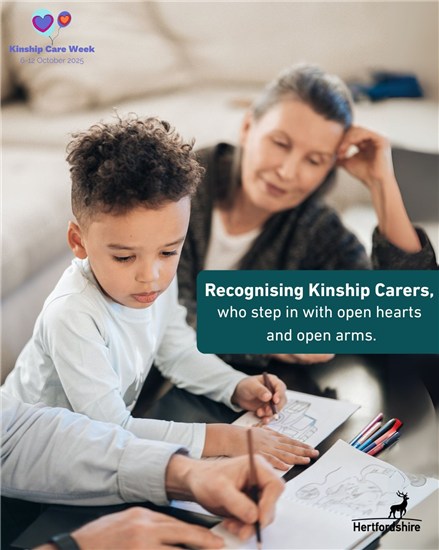 As part of our commitment to supporting kinship families, we are pleased to share Hertfordshire’s Kinship Care Local Offer webpage. This new online resource provides clear, accessible information and support for kinship families. It brings together practical guidance, services, and advice in one place, shaped by feedback from carers and professionals across Hertfordshire. Please take a moment to explore the site and share it with families, colleagues, and partners who may benefit: www.hertfordshire.gov.uk/kinship